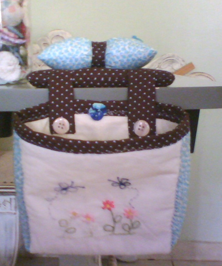 Aqui uma lixeirinha para máquina que fiz para a minha irmã Fatima ,vejam o detalhe do bordado ,ela amou,irmã é assim dá uma força pra incentivar...........