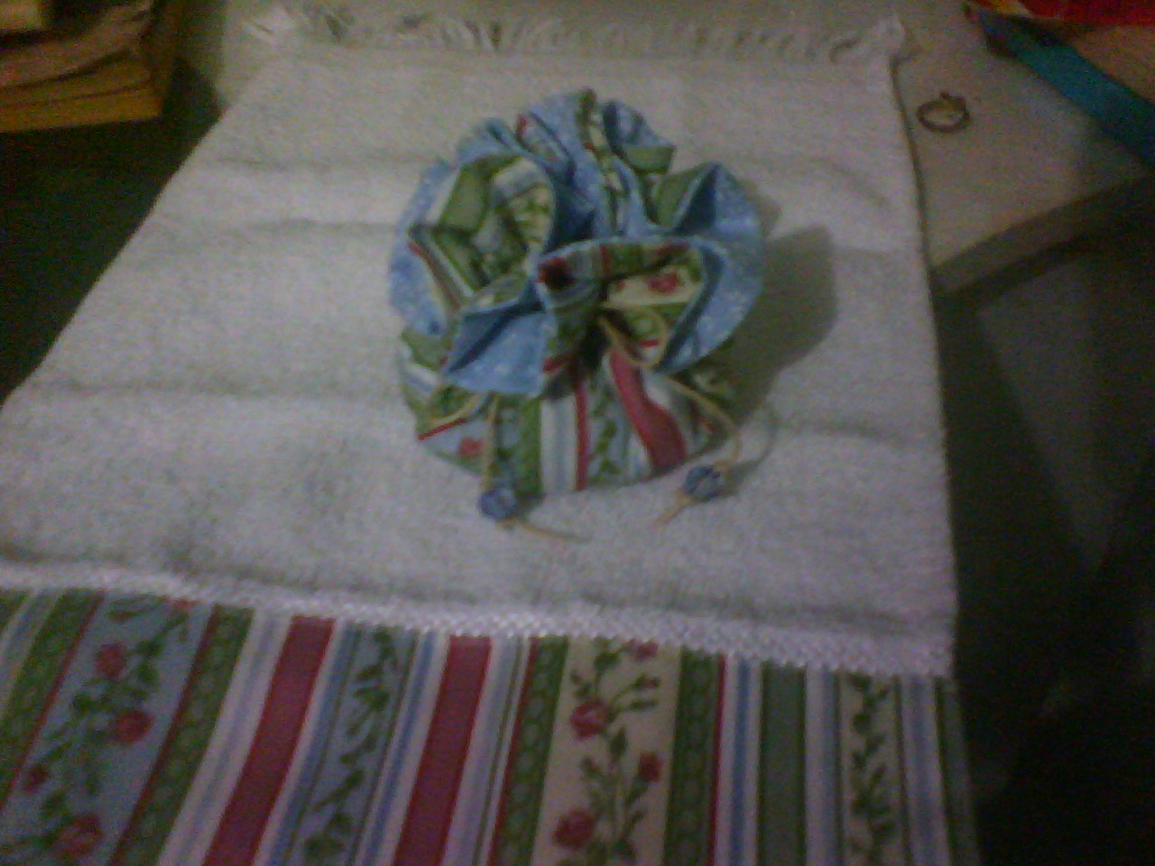 Aqui algumas toalhinhas com costura reta e para treinar mais um sachê redondo,uma trouxinha com passante....gostei muito de fazer!!!!!!!