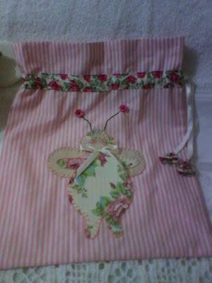 Sacolinha com áplique de abelhinha tilda!!!!!